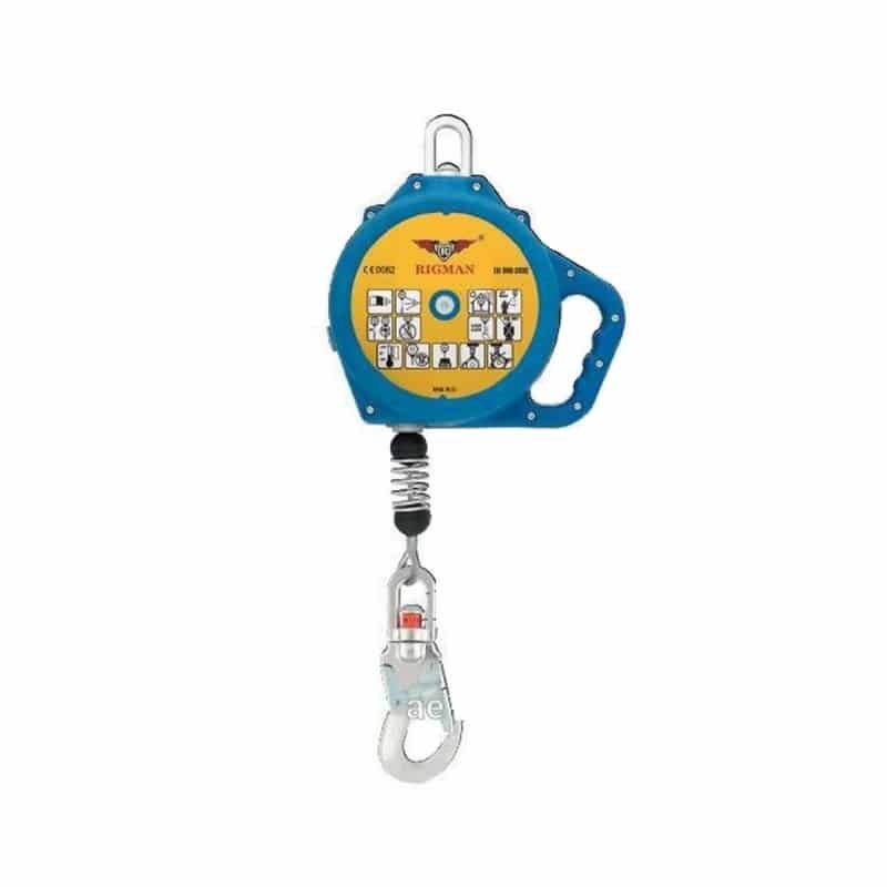 Rigman RM-CR240 Fall Arrester with Hook retractable type fall arrester with galvanized cable Available in 6 Mtrs Length, snap hook with swivel function and built-in fall indicator. The retractable-type fall arrester device CR a component of the personal protective equipment (PPE) against falls from a height. It’s used only with full-body harness rated to fall arrest with Snap hook connector, wire length 6 Mtr and Maximum load 140kg.